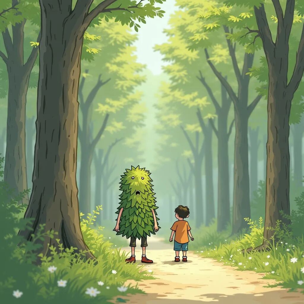 可是,没过多久,一个小朋友就发现了他,还指着他说:“妈妈,你看那个奇怪的人,他穿的衣服和树叶一样!”张先生尴尬极了,只好灰溜溜地从树林里走出来,心里暗自嘀咕:“看来我的隐身术还需要再修炼一下啊!”