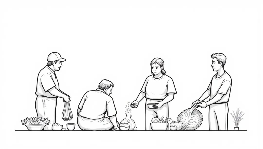 卖韭菜、卖大蒜、卖大葱和卖白菜的四人互相请客,卖白菜的没有还席。以后卖韭、蒜、葱三人就躲着卖白菜的去吃饭,但卖白菜的仍然找去同吃。