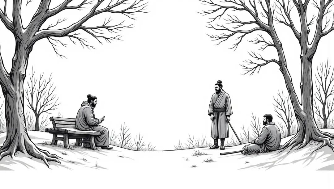 一个大晴天,四个人在一间破庙里避雪。其中一个是做买卖的小商人,提议四个人联句咏雪。并先开了头句:“大雪纷纷落地”