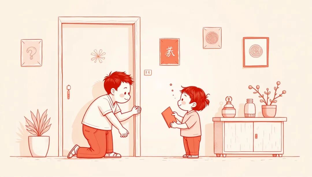 小张快要结婚了。这天,他正在布置新房,忽然走进来一个小孩。他见小张正拿着一张红纸剪成的双“喜”字往门上贴,就问:“叔叔,你快要结婚了吧?”