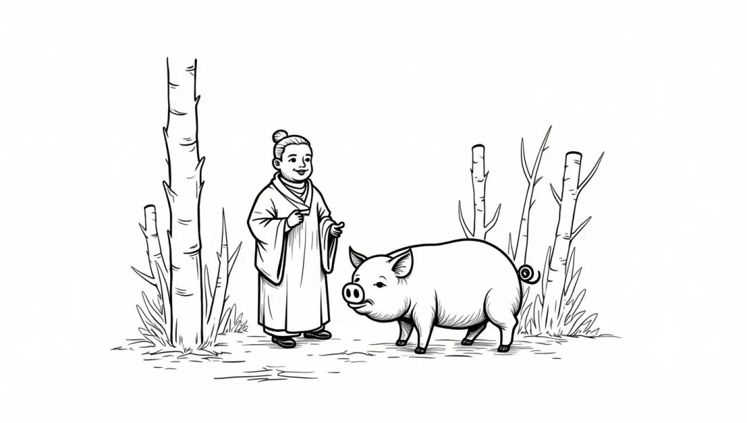 知县老爷瞧见他从怀里掏出两只猪耳朵,不禁怔住了,惊奇地问:“你的耳朵这么大,为何还听不清俺的话?”