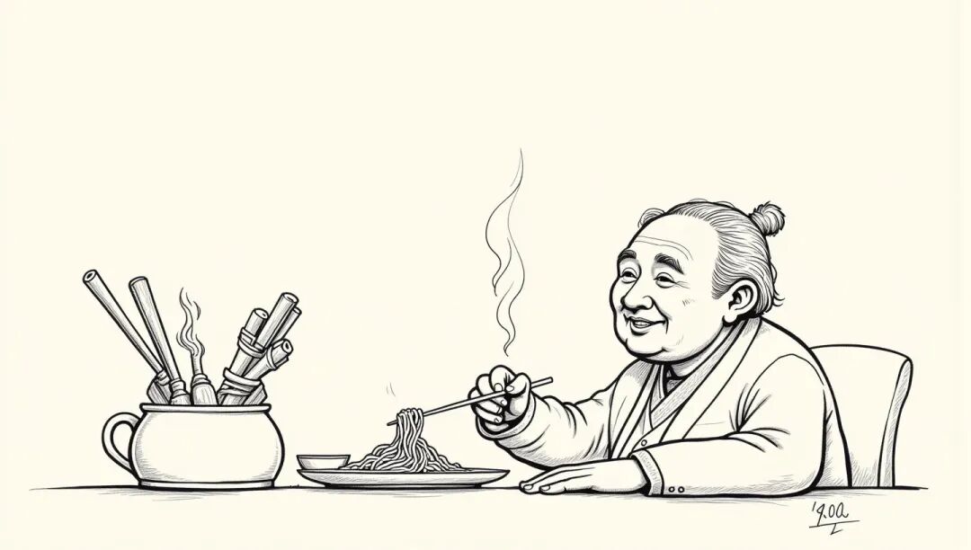 丈母娘盛上一碗寿面,递给女婿,呆木头用筷子挑一下,彬彬有礼地说: