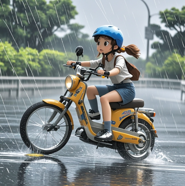 阿玲骑着她的小电动车准备去朋友家,本以为台风天就算有风雨,自己的电动车也能稳如老狗。结果风一吹,雨一打,阿玲的电动车开始在路上“漂移”——左飘一下,右滑一下。路过的大叔骑自行车都忍不住笑:“姑娘,你这电动车是自带漂移技能吧?”阿玲吓得魂飞天外,但强装镇定地喊回去:“没事,主要是我玩赛车游戏玩多了,练出来的!”