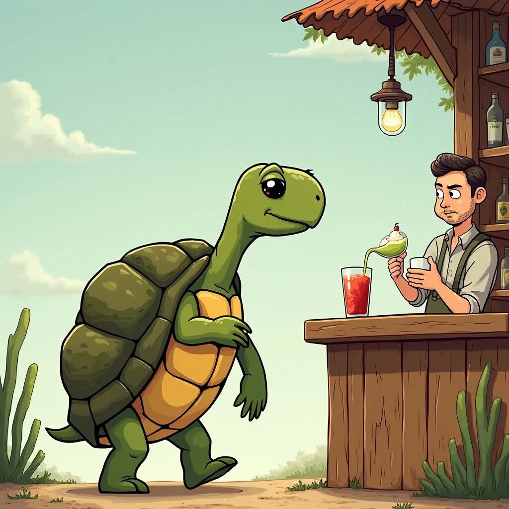 有一天,一只乌龟走进了一家酒吧。酒保看着它,有些疑惑地问:“乌龟先生,你确定你要喝酒吗?”