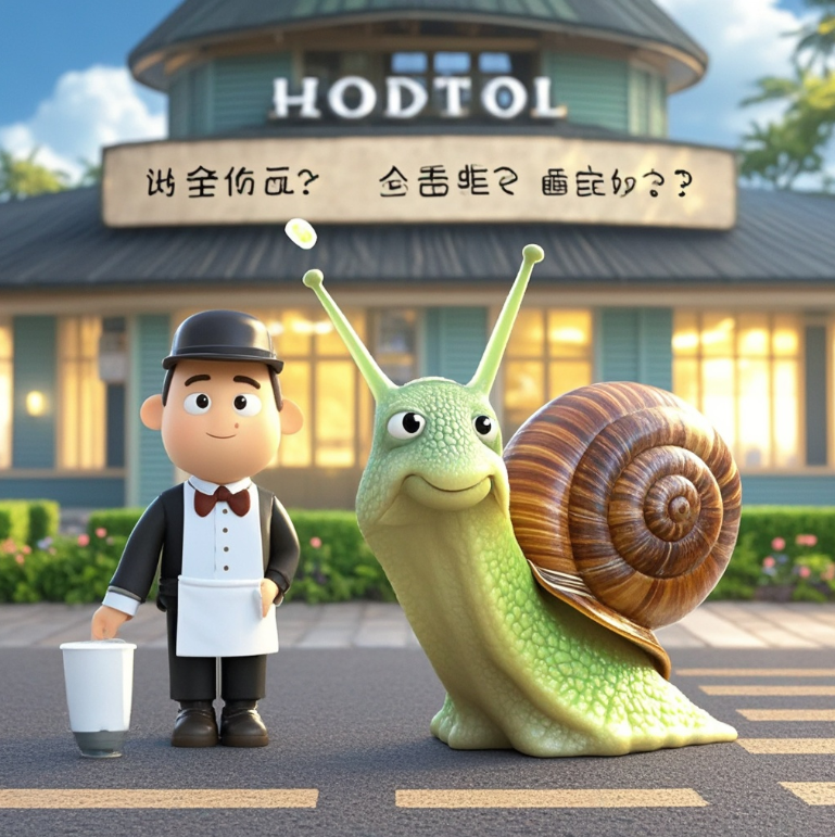 服务员看着它,有些疑惑地问:“蜗牛先生,你确定你要住酒店?”