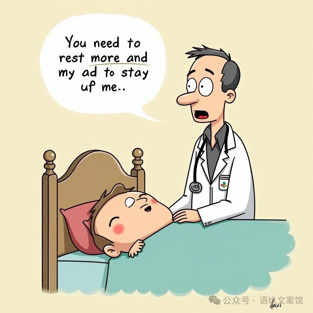 有一天,一个成年人去看医生,医生说:“你需要多休息,少熬夜。” 他回答:“我知道啊,可是我的床告诉我,它更喜欢晚上和我一起‘奋斗’!”