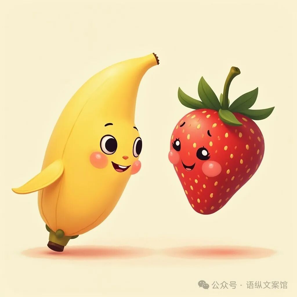香蕉与草莓的对话A:草莓姐姐,你知道吗?我最近在练瑜伽哦!B:哇,香蕉哥哥,难怪你弯曲度这么高啦!