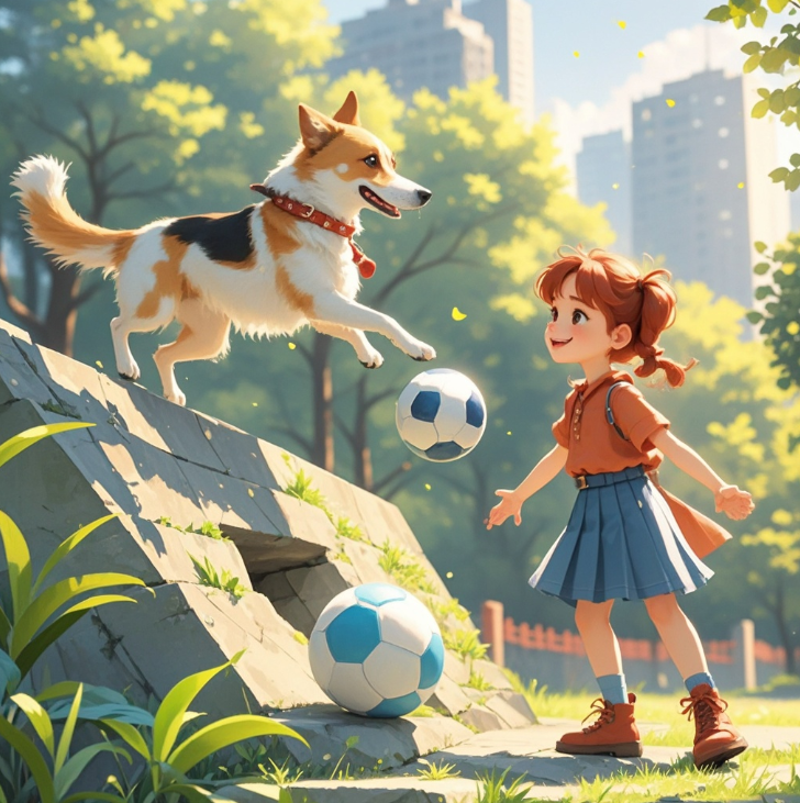 有一位名叫小红的女孩,她有一只非常聪明的狗。有一天,小红带着狗去公园玩。狗看到一只球滚动到了一个很高的坡上,于是它决定帮助小红把球拿回来。狗用尽全力跳上了坡,但是球却滚得更远了。小红看到这一幕,忍不住笑得前仰后合。
