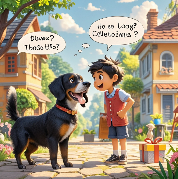 在一个小镇上,有一只名叫小黑的狗。小黑与众不同,它竟然会说话。每当有人问它问题,它总能给出幽默而聪明的回答。