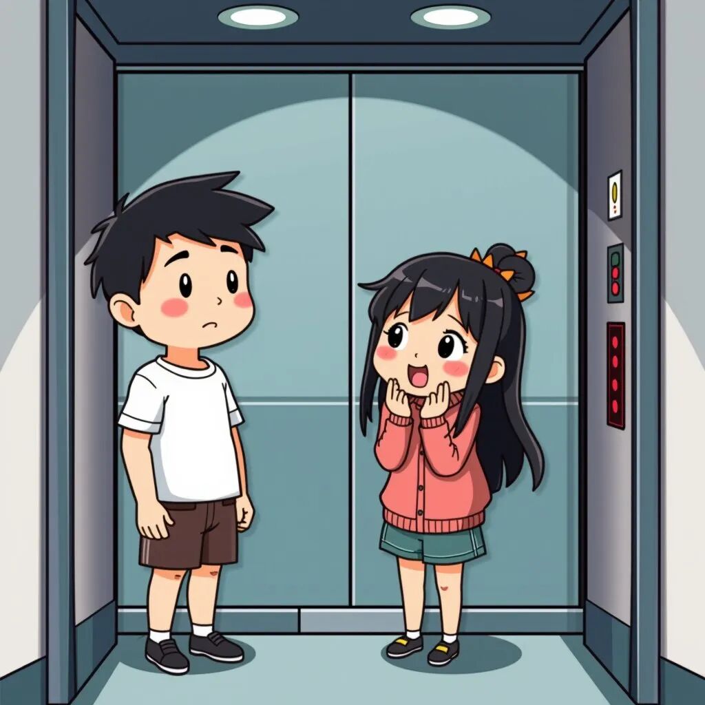 小张和小李进入电梯,突然电梯卡住了,两人被困其中。