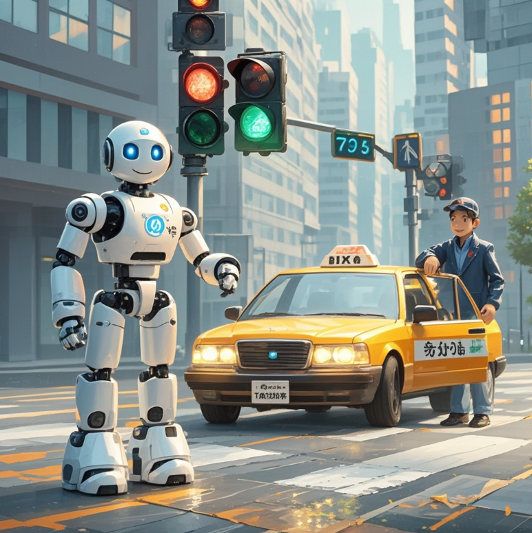 一天,机器人小智和出租车司机小王举行了一场竞赛。谁能在最短时间内,用最快的速度绕城市跑一圈。比赛开始后,小智凭借先进的科技,迅速领先。然而,在最后一个路口,小智误以为红灯表示停止,竟然停了下来。小王趁机超过,赢得了比赛。小智望着获胜的小王,不禁笑了笑,感慨自己的“机械思维”。
