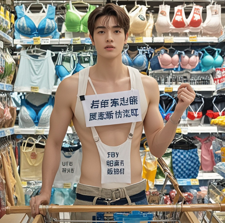 一位先生在超级市场购物,当他走到内衣区时,突然发现一个衣服标签上写着:“自助脱衣,脱得越快,折扣越大!”本着好奇心的驱使,他决定试一试。于是,他迅速脱下了衣服,结果折扣确实很大——他买一送一!