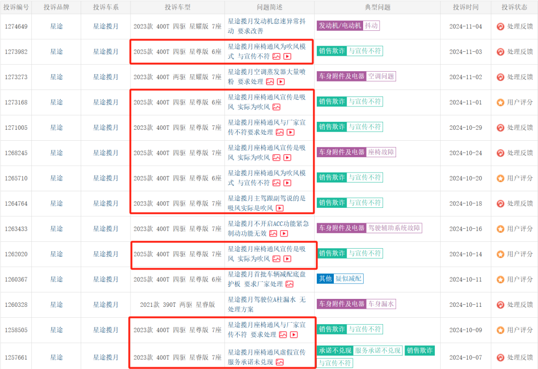 近日,在车质网论坛上有用户发帖投诉,星途揽月在实际用车中,座椅的通风模式是吹风而非宣传的吸风模式。该用户用纸巾和塑料袋进行了测试,驾驶30分钟后,套在座椅上的塑料袋一直处于鼓包状态。