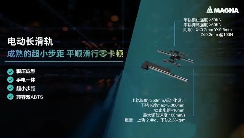 该系统采用前沿设计,实现前后排座椅共享轨道,结合超高强度钢材与精密辊压成型工艺,确保了结构的稳固与安全。它支持手动与电动双重操作模式,上轨延伸350毫米,下轨更是达到惊人的3000毫米长度,最大调节速率高达100毫米/秒,极大地拓宽了座椅调整的自由度。