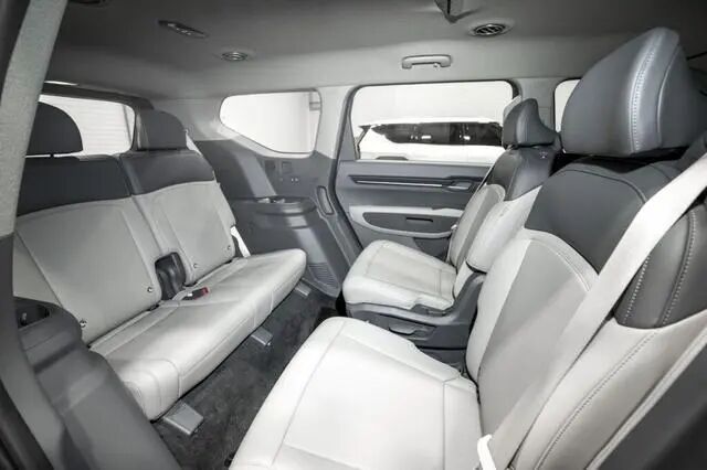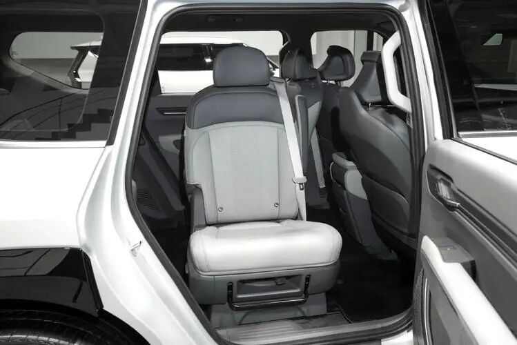 第二排旋转式独立座椅可向内旋转180°,向外旋转90°,这意味着可以与第三排乘客面对面在旅途中召开会议和聊天,而老年人或残疾人士也可以更舒适地上下车。第三排座椅设有杯架和移动设备充电端口。还配备了“放松模式”,第一排和第二排乘客通过电动腿托获得更多舒适感。前排座椅的电动调节是固定的,第二排座椅则配备了八种不同的电动调节模式,以实现空间的多样化功能。起亚EV9拥有平坦的地板,所有后排座椅都可以放平,可达2319升的使用空间。