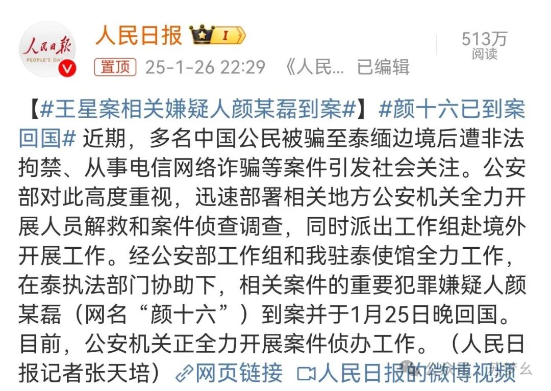 25日晚上,王星案件重要案犯“颜十六”落网。