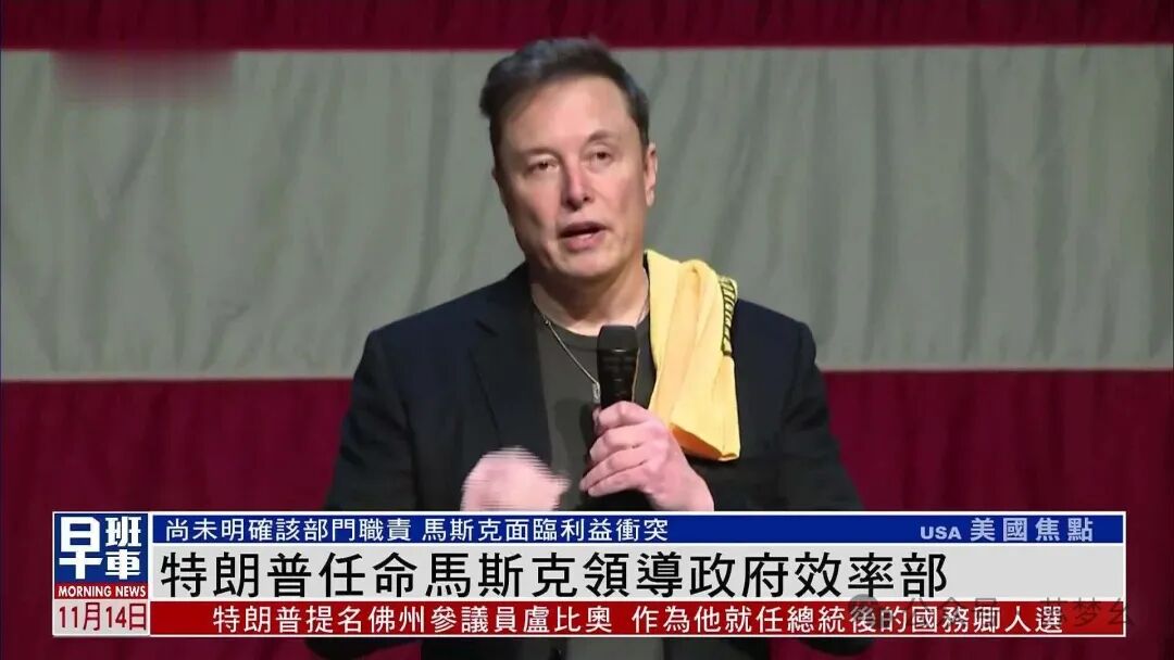特朗普竞选成功之后,任命马斯克负责新部门政府效率部,