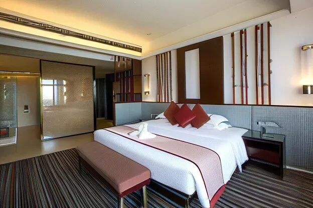 酒店客房均是宽2米的特大床,对于宝宝比较小的三口之家或四口之家,躺上去也很宽敞,升级家庭亲子房还有专门为宝宝准备的上下铺,不在家里甚在家里。