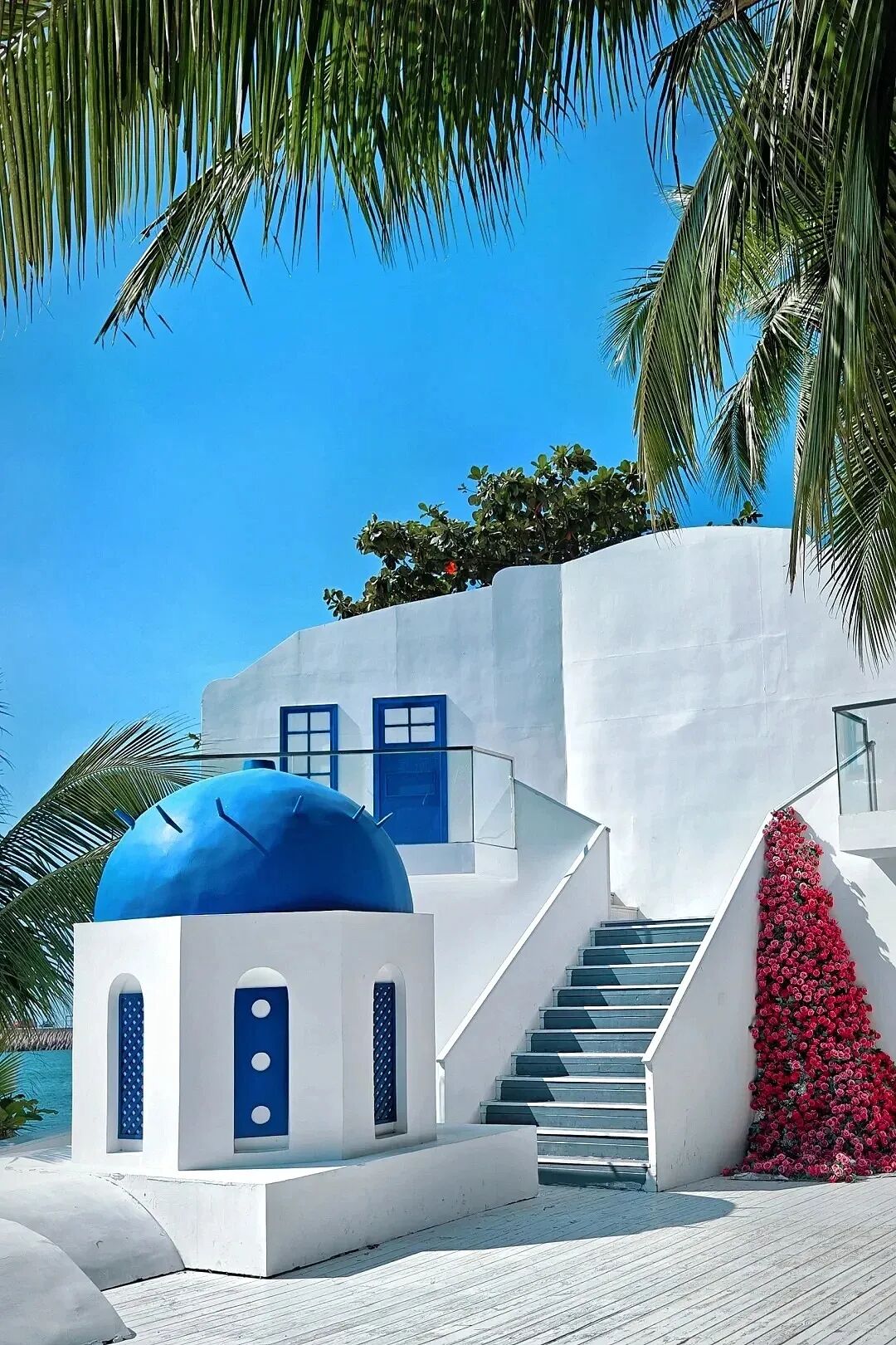 比如圣托里尼特有的蓝白建筑,图往朋友圈一丢,不知道的人都以为你在圣托里尼。