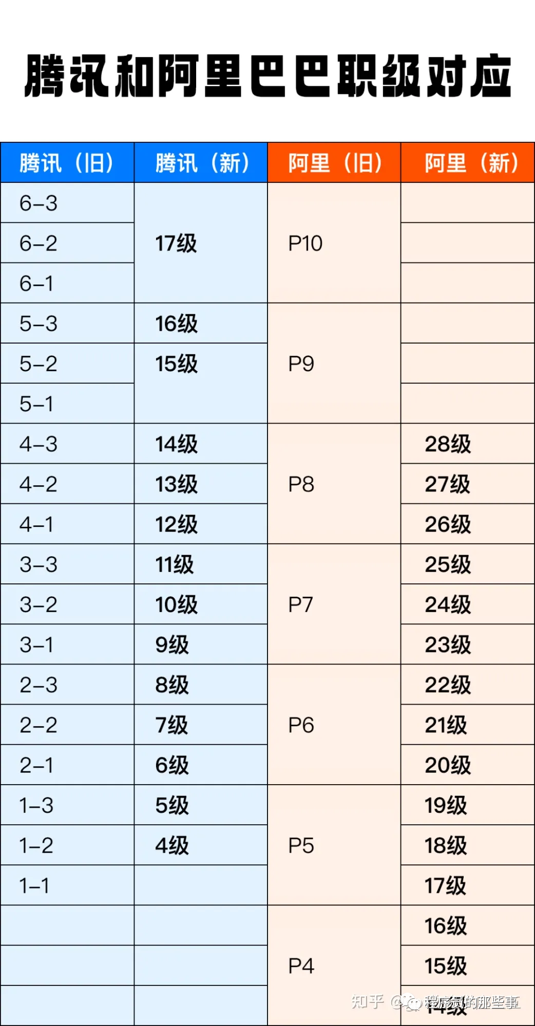 阿里不是第一个改革人力制度的互联网大厂,腾讯几年前就改过,将原来的 6 大层级改为 4-17 级,阿里此次的变化与腾讯有点异曲同工的意思。