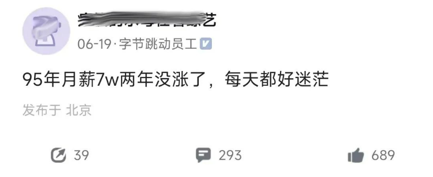 最近我逛某论坛,看到某认证字节跳动员工发帖,自称95年,月薪7w两年没涨了,每天好迷茫。