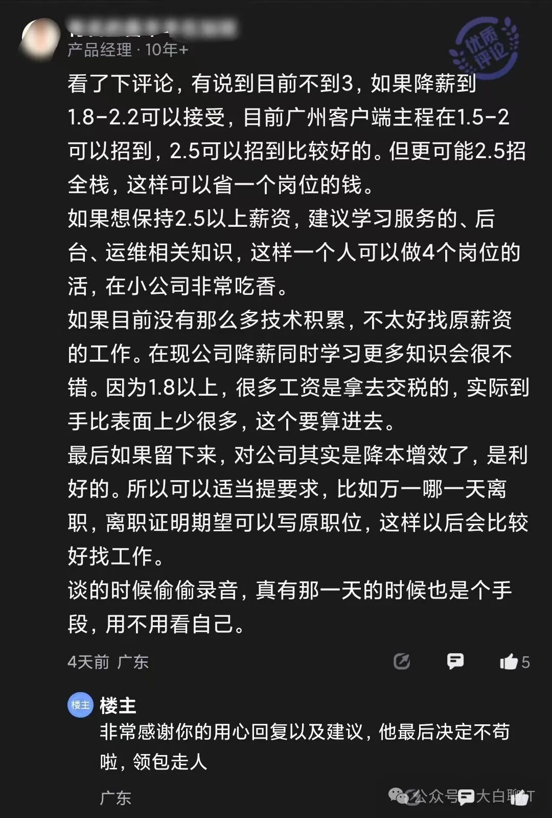 3,老板选择降薪,就有可能在日后再次裁掉时“包”变小了。