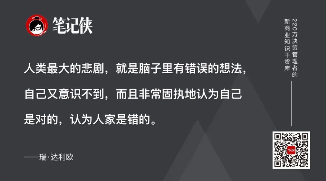 人类最大的悲剧,就是脑子里有错误的想法,而自己又意识不到,自己不知道,到底是对还是错,而且,非常固执地认为自己是对的,认为人家是错的。