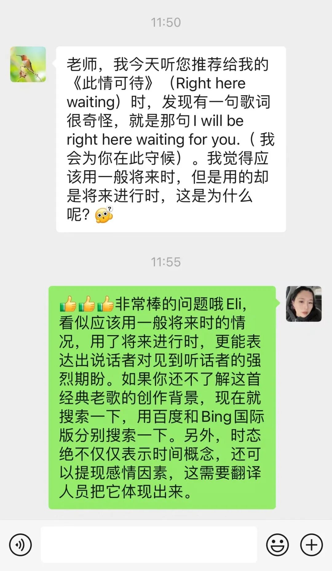 这是今天学生发信息问我的一个问题“应当用一般将来时的句子,怎么用了将来进行时?”