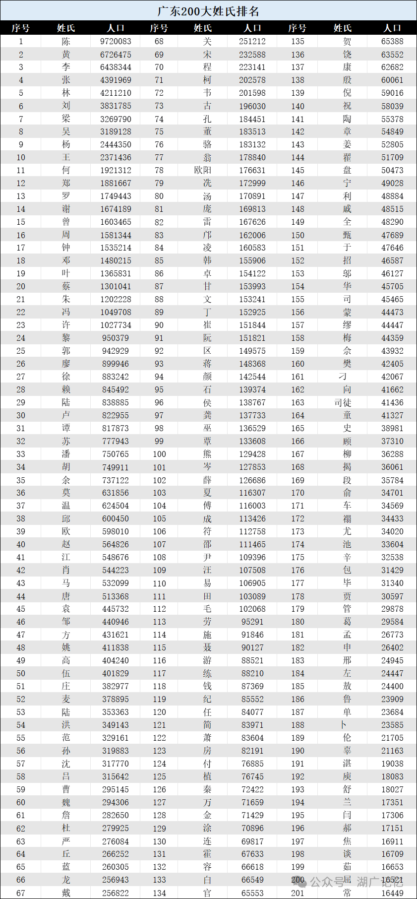 在广东各地还分布着许多麦氏,今廉江市麦氏人口就超过万人。温姓在佛岗县、连州市、普宁县、英德市等地均有分布,据不完全统计,普宁县温氏人口有3万多人。下面我们再来说说,广东的几个大姓。