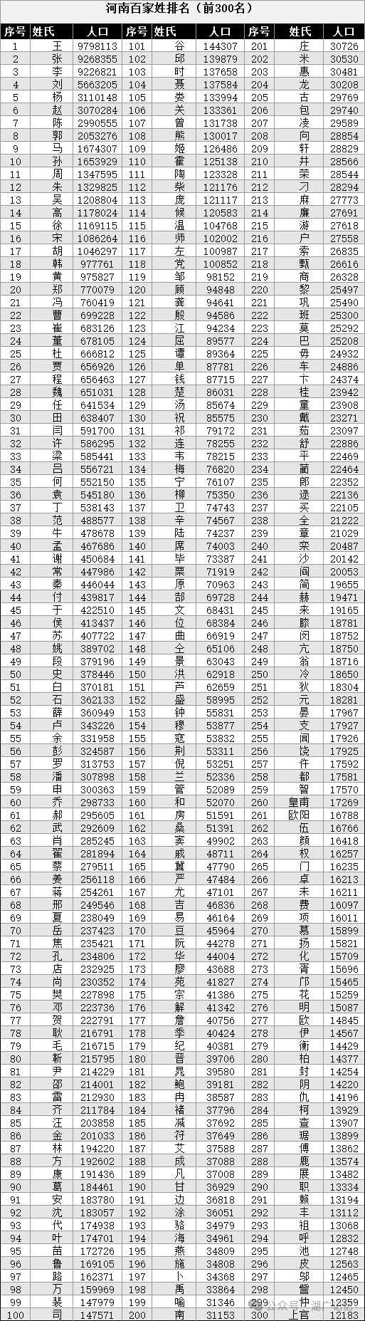 日常生活中常见的姓氏,王姓、张姓、李姓、刘姓、赵姓、杨姓、陈姓、郭姓是河南人口较多的大姓,其人口均超过200万人。其中,王姓、张姓和李姓人口较多均在900万以上。