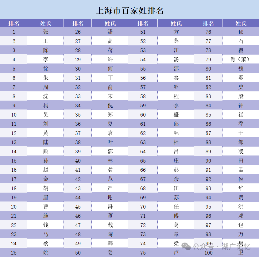 关于上海的姓氏,我们可以从当地的一些古老的地名,可以追寻到一些痕迹。境内以姓氏命名的地名有徐家汇、朱家湾,还有陆家嘴等多地。那么,上海市的姓氏排名是什么样的呢?