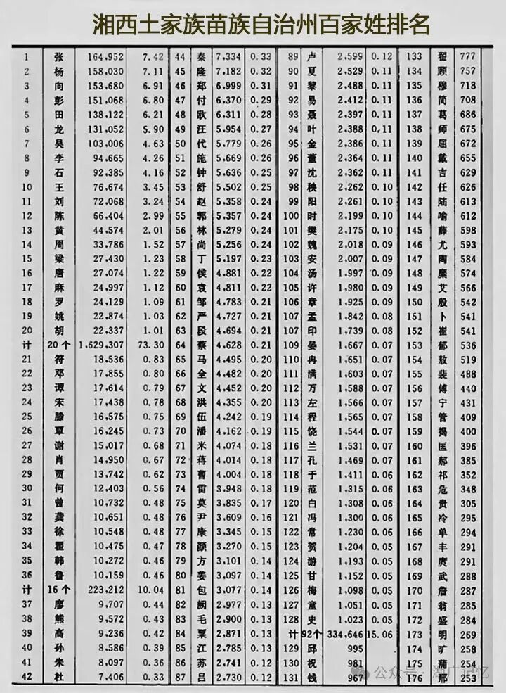 各位朋友,说说看你的姓氏是从哪里迁移来的?看看湘西州百家姓排名榜,找找有没有你的姓氏?