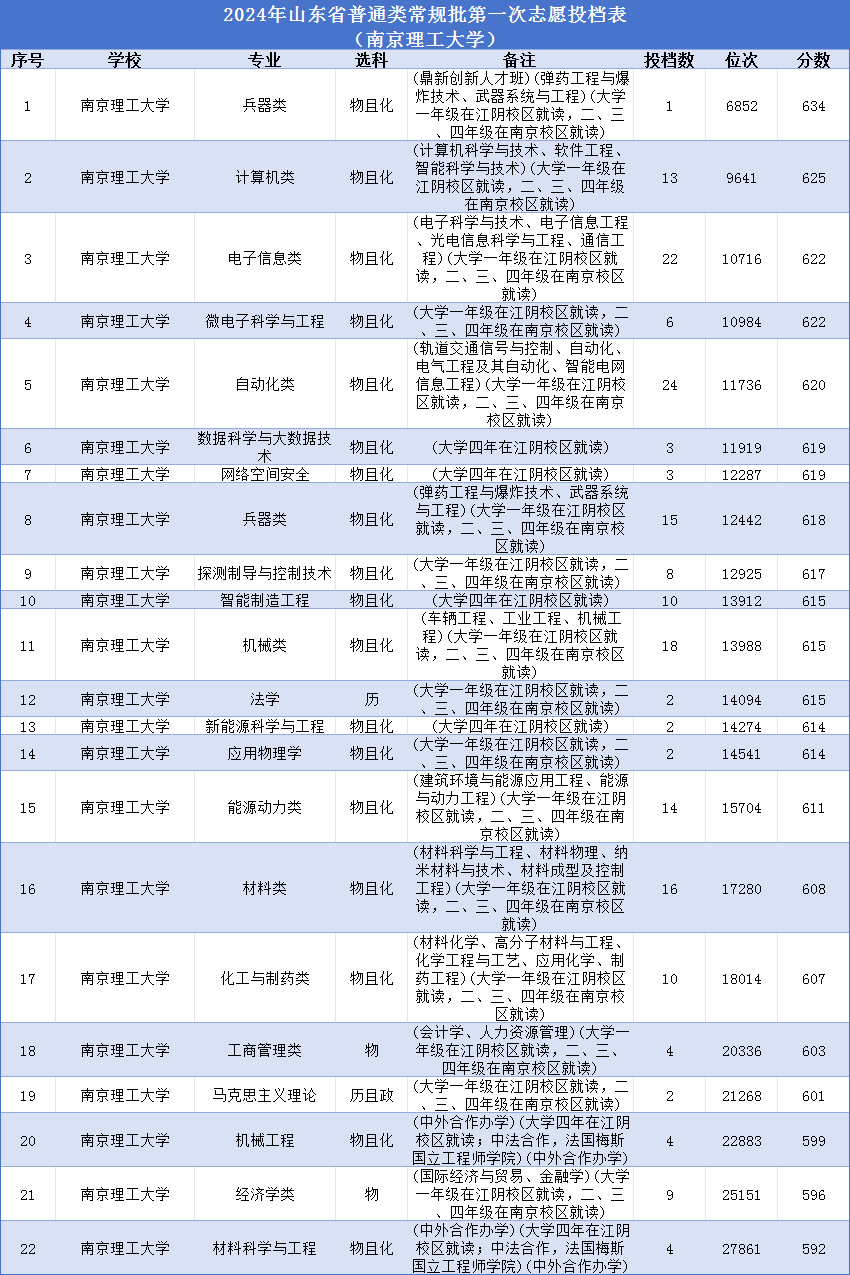 以下是2024年山东省普通类常规批第一次投档表情况,小编筛选出南京理工大学的相关数据,供考生及家长进行参考。