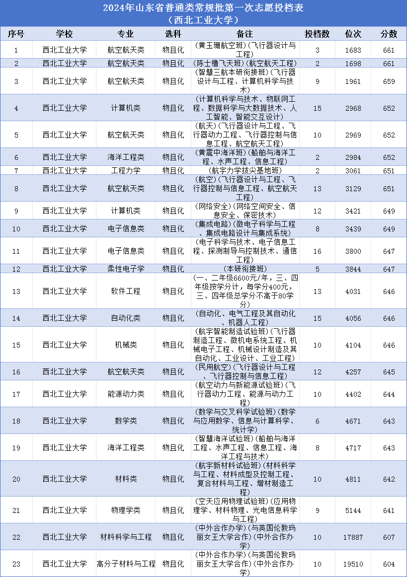 以下是2024年山东省普通类常规批第一次投档表情况,小编筛选出西北工业大学的相关数据,供考生及家长进行参考。