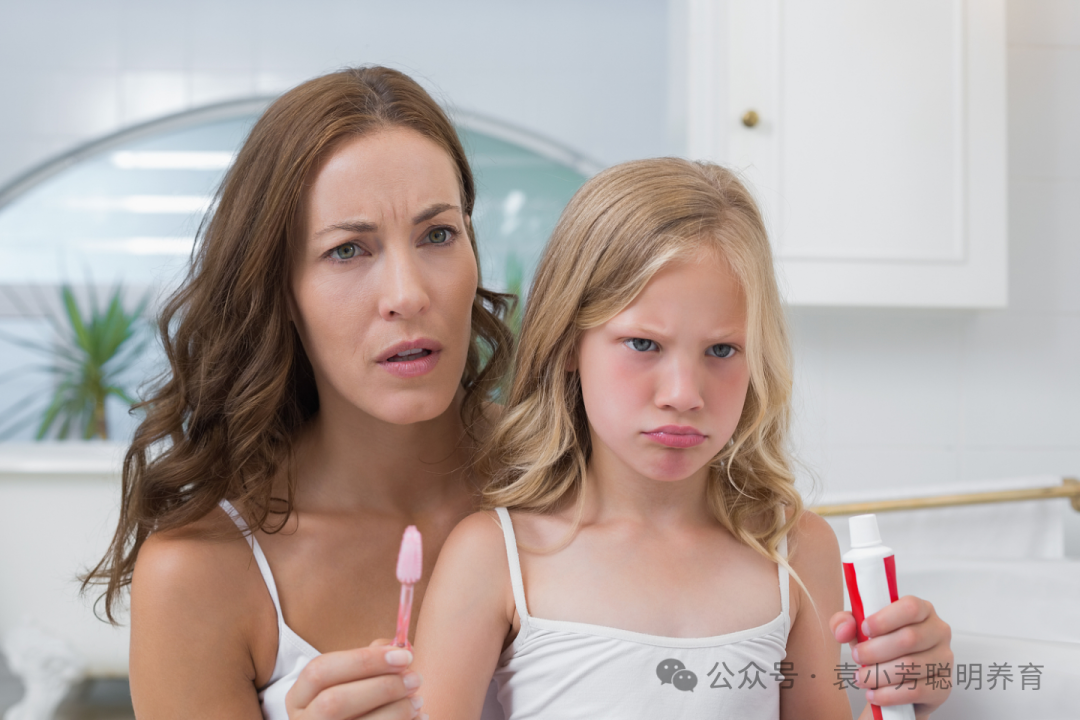 我在跟这位妈妈沟通后得知,原来是因为之前爸爸在孩子面前总是数落孩子刷牙不认真。
