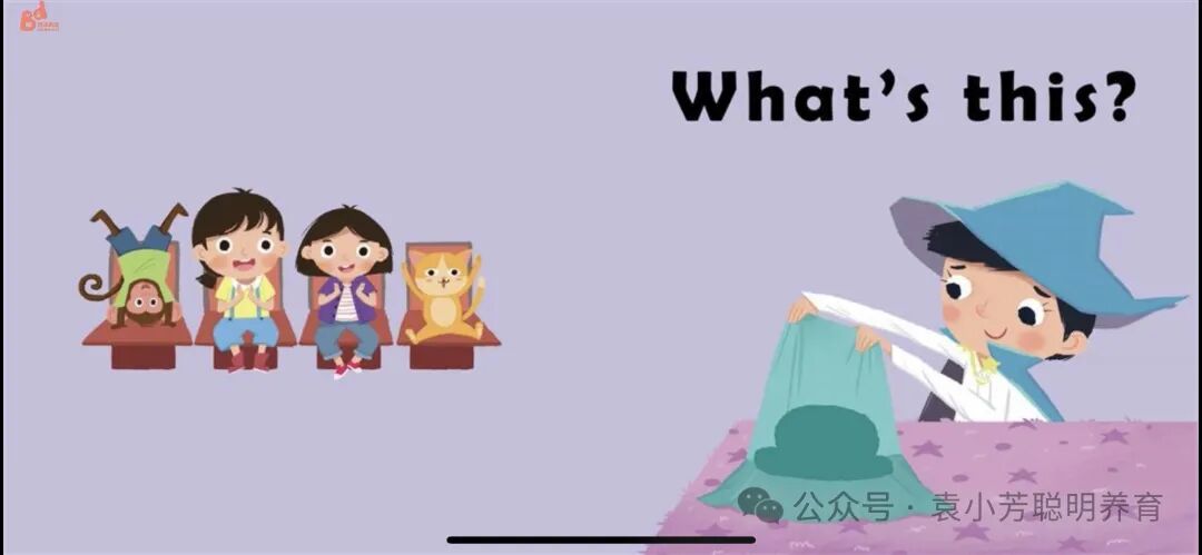 让孩子学会《what's this》这首儿歌,同时学会what's this,it's a hat. 等表达方式。