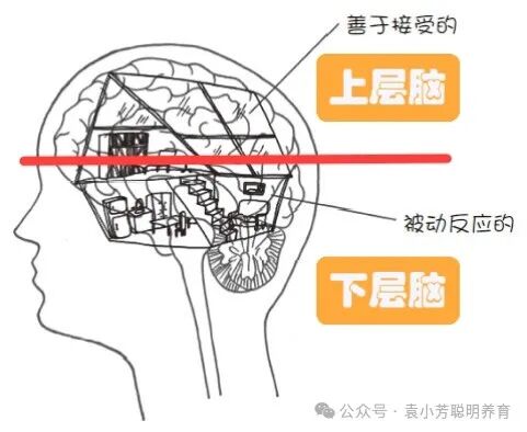 他们会习惯性地优先用自己的下层脑来表达需求、不满甚至抗拒,而他们的上层脑呢,没有怎么被激活过,不好使。