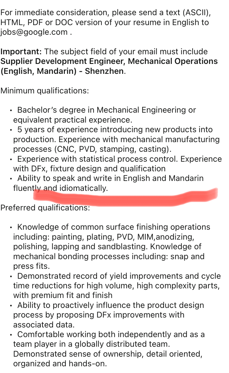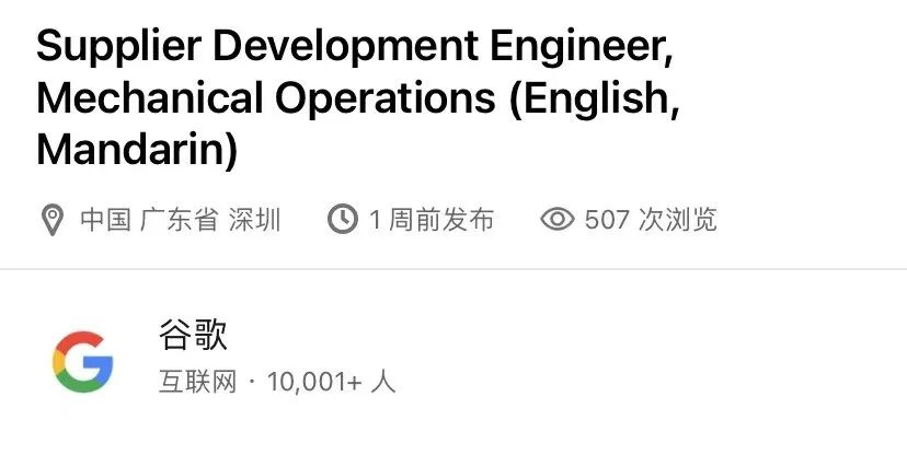 为什么职场人一定要学好英语?我们看一下Google的这个结构件供应商开发工程师岗位需求,来和大家一起剖析。