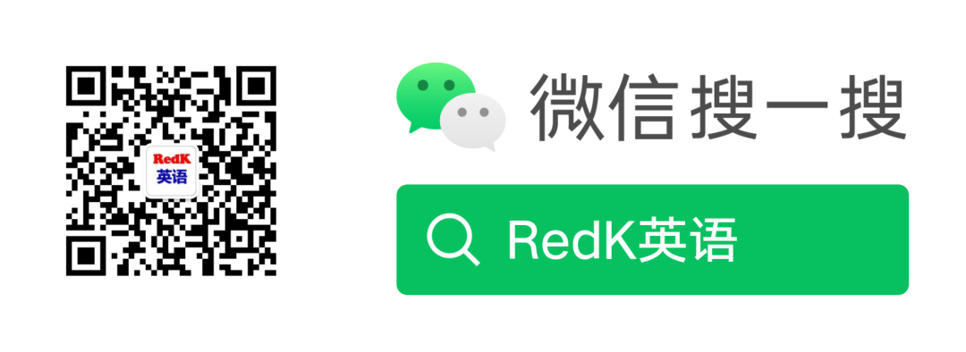 郑重声明:此文为作者独立观点,不代表RedK英语立场,部分视频,内容及图片来源网络,版权归原创者所有。个别文章因转载众多,我们无法注明来源和原作者。凡本公众号所发内容,如涉及版权烦请告知,我们会立即删除并表示歉意。所分享资料均作为学习使用,请于24小时之内删除,任何商用所产生的后果请自行承担。谢谢!