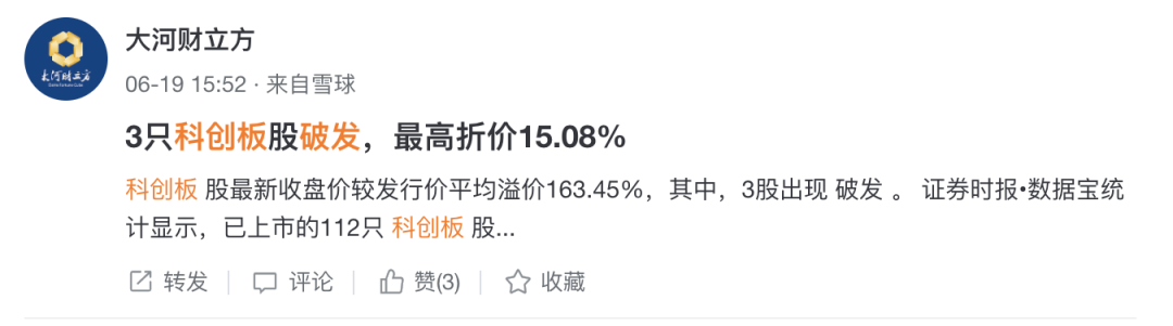 去年11月,科创板公司昊海生科一开盘就跌破发行价,成为科创板首个“破发”案例;6月,科创板跌破发行价的股票有3只,最多的一只跌了11.8%。