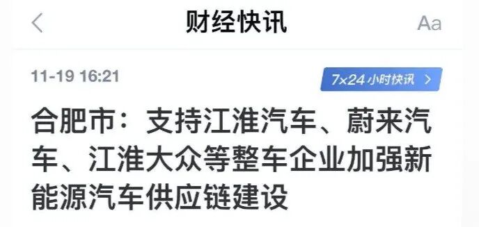 对了,今天合肥人民政府又说,支持江淮汽车、蔚来汽车、江淮大众等车企加强供应链建设。这两年合肥不知道受了哪位高人指点,狂砸新能源汽车,这个点可能会带动一直没有存在感的合肥飞起来。