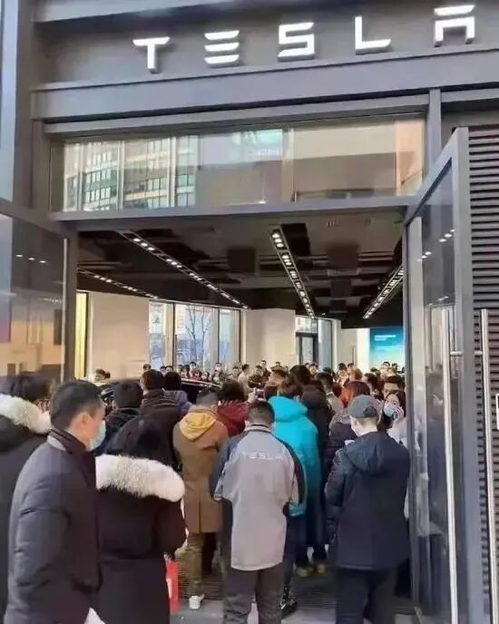 一时之间,特斯拉从昂贵的电动玩具“降落人间”,成了买得起的家用SUV,Model Y被疯抢:特斯拉官网访问量激增,出现短时间的宕机,门店挤成了菜市场,试驾排到了几个月之后……