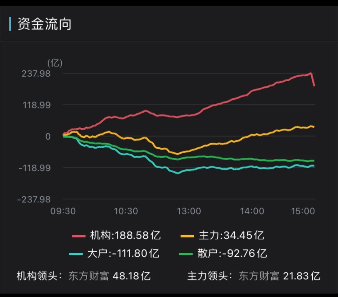 我仔细看了一眼,昨今两天资金分化明显:主力资金流入,散户资金还处于流出状态。