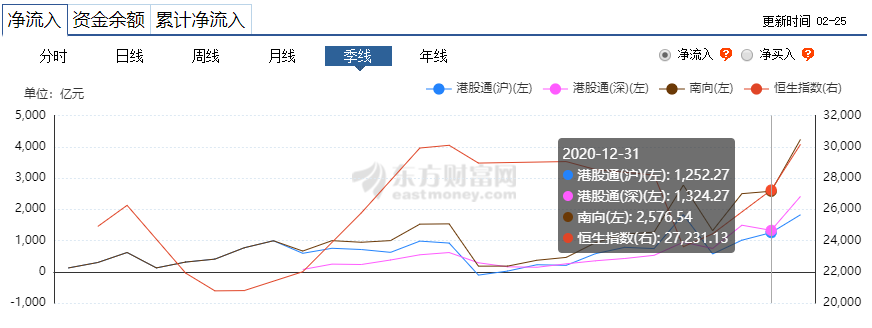主要原因是,港股一直属于价值洼地。去年全球放水,A股涨得那么猛,上证指数从去年2月到现在涨了29%,港股只涨了12%。