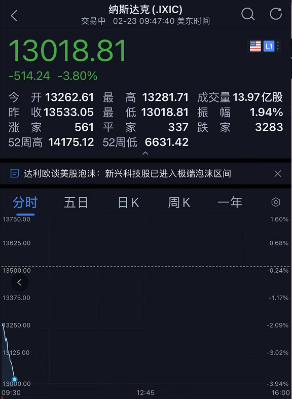 周二晚上,美股经历了惊魂一夜。刚开盘,道琼斯指数跌了1%,纳斯达克跌了快4%,苹果跌了6%,特斯拉崩了13%,山崩地裂。
