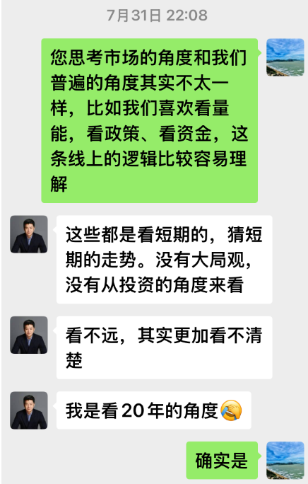 7月底莫总跟我有一次深谈,当时市场仍然黯淡无光。