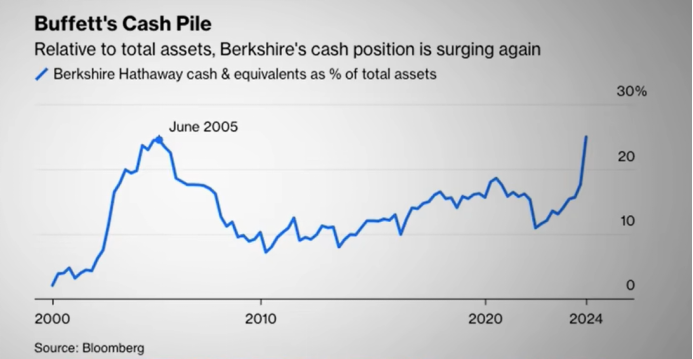 在减持了苹果近50%的股份后,伯克希尔的现金储备达到接近2800亿美元的历史新高。