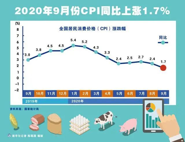 另外今天9月的CPI公布,同比上涨1.7%,是今年第一次跌落2%。