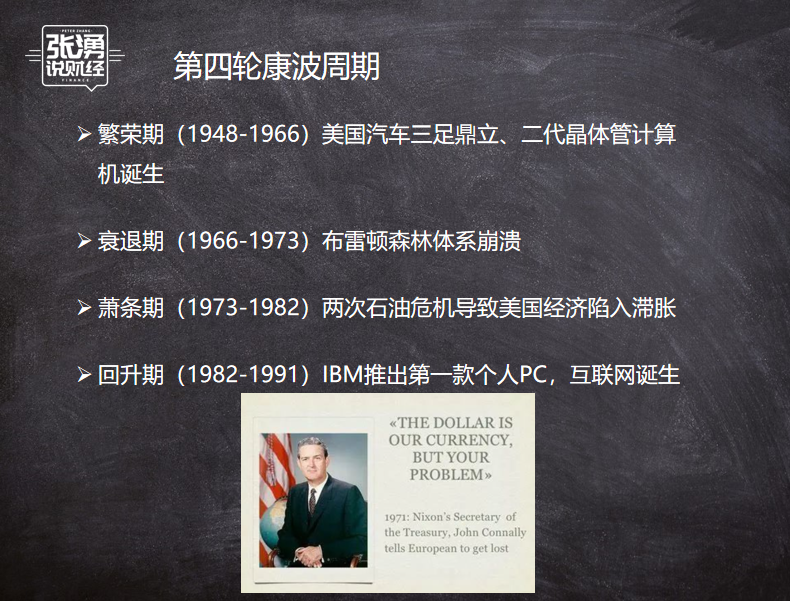 第四次康波的萧条期是两次石油危机,导致美国陷入滞涨,布雷顿森林体系崩溃;