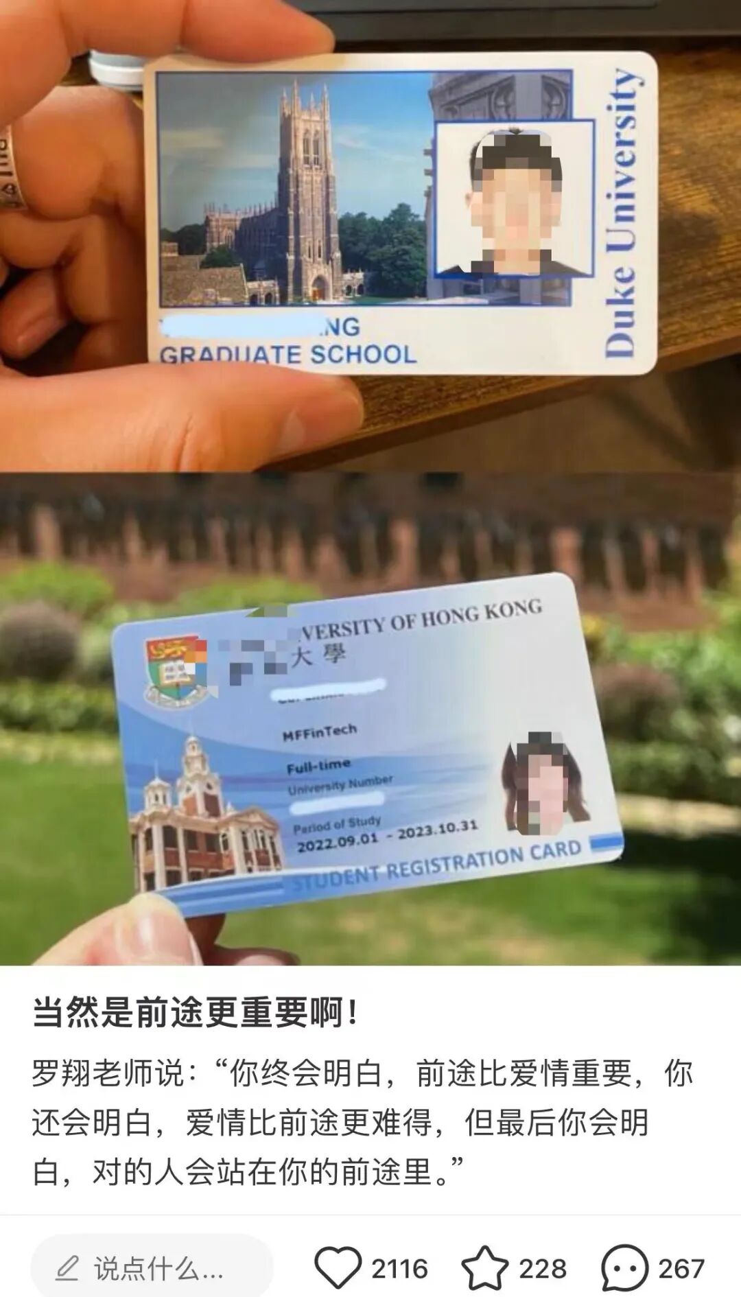 当下,Top高校学生在朋友圈官宣恋爱时,配图流行拼接起自己与对方的校园卡,颜值高的还要发在双方校门口的合影,以示门当户对、顶峰相见,顺带玩一下顶校相爱相杀的梗。